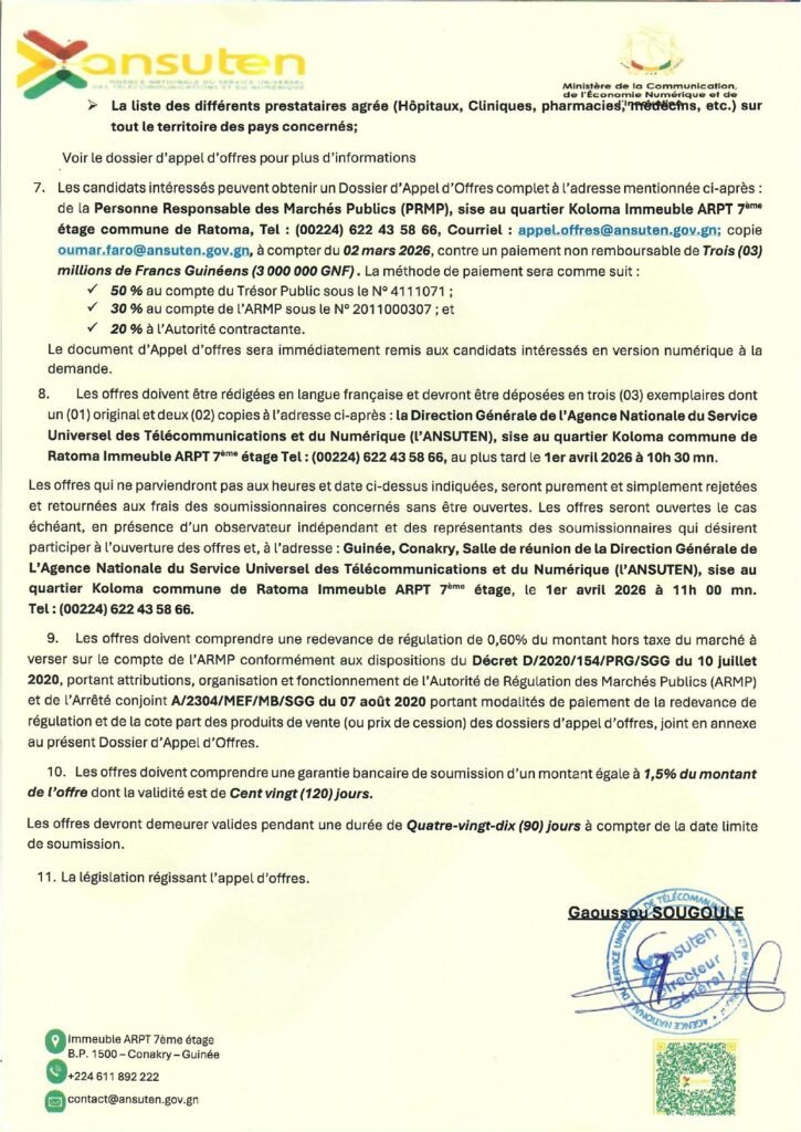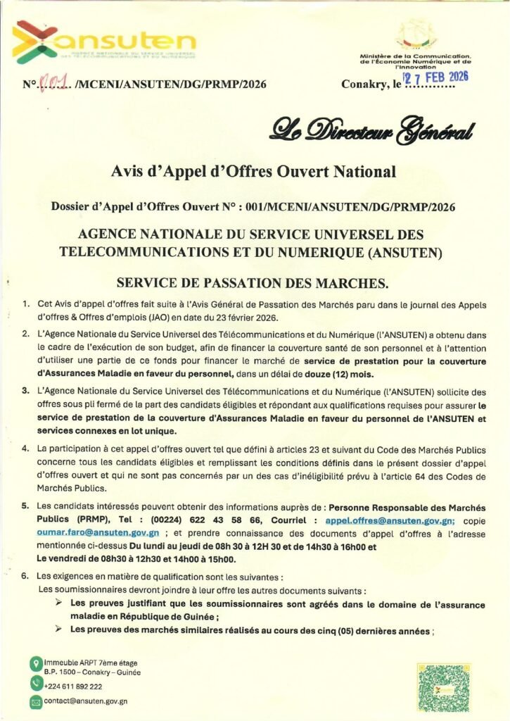 ANSUTEN – Appel d’offres pour le marché de service de prestation pour la couverture d’assurances maladie en faveur du personnel